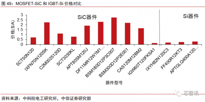 但 SiC 的高成本制约普及节奏,未来 SiC 与 Si-IGBT 可能同步发展,相互补充。与 IGBT 相比,SiC 材料同样存在亟待提升之处。1)目前 SiC 成品率低、成本高,是 IGBT 的 4~8 倍;2)SiC 和 SiO2 界面缺陷多,栅氧可靠性存在问题。受限于高成本,SiC 器件 普及仍需时日,叠加部分应用场景更加看重稳定性,我们认为 SiC 在逐步渗透的过程中将 与 Si-IGBT 一同成长,未来两者均有广阔的应用场景与增长空间。