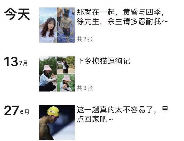 7月20日,一张疑似央视记者王冰冰的个人社交账号截图流出,文案疑似与游泳运动员徐嘉余官宣恋情:“那就在一起,黄昏与四季,徐先生,余生请多忍耐我~”据悉,王冰冰曾采访过运动员徐嘉余,去年9月,徐嘉余还曾在个人微博分享与王冰冰的合照,在配文中表达过对王冰冰的好感:“今天半决赛比得热火朝天,但心还是冰冰的,糟了心跳了。”