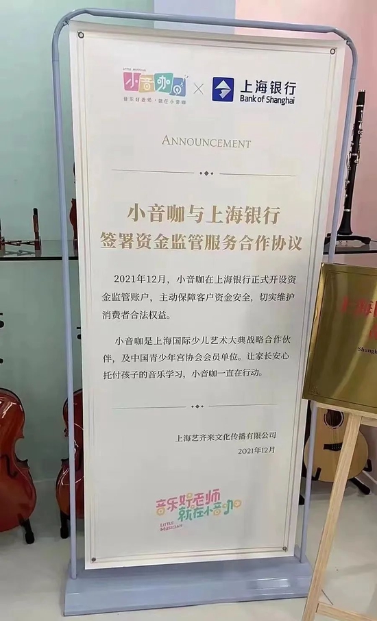 “天底下哪有这等好事?!”面对家长的惊叹和质疑,小音咖训练有素的销售人员给出了如下一些解释:小音咖后台很硬,不可能垮;小音咖拿着学费去投资了,投资赚回的钱补贴差价;小音咖有大笔融资,比如上海文化圈大咖黎瑞刚的华人文化产业基金,投了好多个亿,底气十足……随后再拿出一张精心打印的与上海银行签订资金监管账户的合作协议。