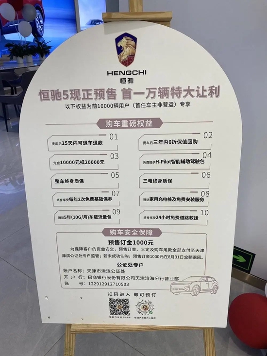 随着恒驰5展开预售,最近忙着“保交楼”的许家印和恒大集团显然又给自己的债务黑洞来了一次“添砖加瓦”。这一次的挑战,便是“保交车”。当然,这一次许老板提前给车主喂下了定心丸:预售订金、认购定金及尾款全部支付至天津市津滨公证处设立的专用账户并接受公证处监管。