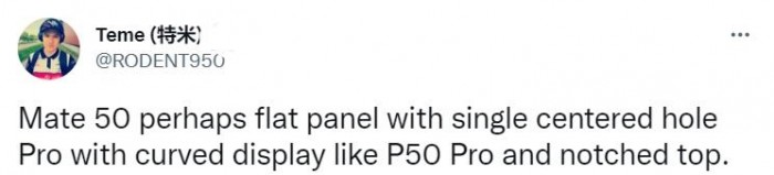 华为Mate 50系列即将登场,这次发布会预计会推出Mate 50、Mate 50 Pro和Mate 50X三款机型。其中Mate 50为中置挖孔直屏,而Mate 50 Pro为曲面屏。之前华为Mate系列也有过直屏和曲面屏同台发布的先例,比如Mate 30和Mate 30 Pro,标准版是直屏,而Pro版本是曲面屏。