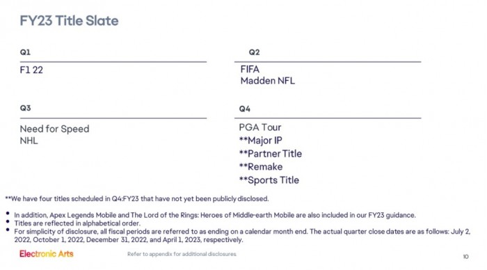 EA 2023财年将于2023年3月结束,而之前EA在财报中公布了2023财年的发售计划,确认第四季度,也就是2023年1-3月将会发售五款游戏,其中两个是“重要IP”和“一个游戏的重制版”。