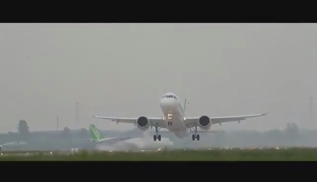 C919大型客机是中国按照国际民航规章自行研制、具有自主知识产权的大型喷气式民用飞机,158-168座,航程4075-5555公里,2015年11月完成总装下线,2017年5月首飞。