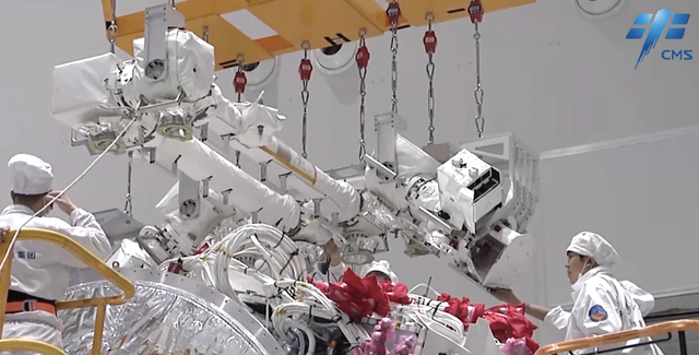 问天实验舱舱外携带一套5米长、7自由度的小机械臂,其小巧、精度高,方便抓取中小型设备,开展更精细的操作。小臂还能与核心舱大臂级联成15米长的组合臂,能够自由爬行于空间站三舱组合体之间,开展范围更广的舱外作业。