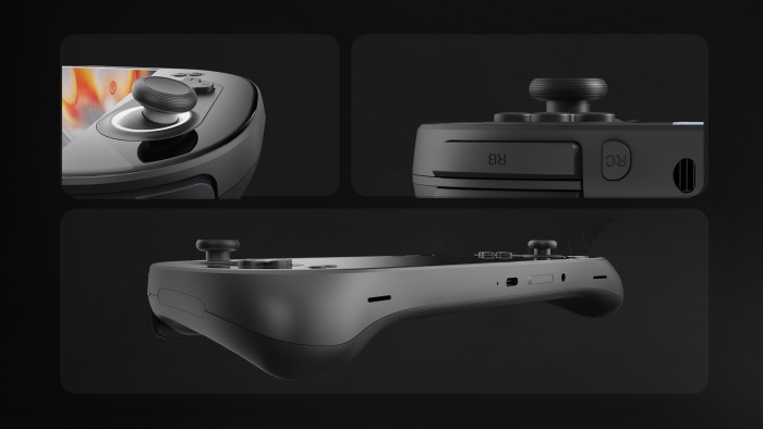 它还号称全球第一款全面屏掌机,7英寸IPS屏幕,分辨率1920x1080,正面覆盖一整块高级玻璃。