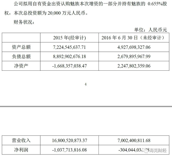 2016年10月21日,A股上市公司天音控股发布公告称,拟投资魅族总计2亿元、占股0.655%。稍加计算可知,天音控股投资魅族时,魅族估值约305亿元。这与时下李书福收购魅族的低价位不在同一量级。天音控股公告披露,魅族2015年净亏损10.38亿元,2016年上半年净亏损3.04亿元。也即截至2016年6月30日18个月,魅族净亏损13.42亿元。