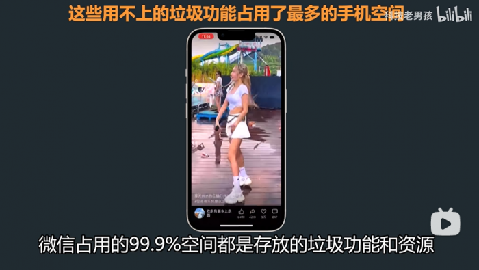 继续逆向工程后,该UP主表示,微信中真正实现聊天的代码可能只占0.1%,大部分代码用来运行小程序、视频号等功能,“微信占用的99.9%空间都是存放的垃圾功能和资源。”