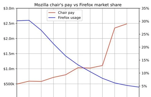 图:Firefox主席要求的薪水与每年损失的用户数量之比