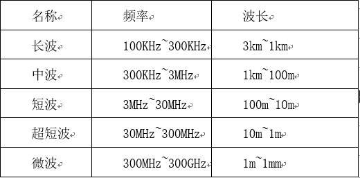 常见的无线电波按照波长可以分段为: