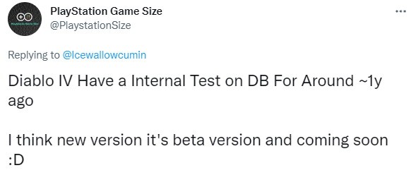 越来越多证据表明,《暗黑破坏神4》终于要来了,虽然目前我们不清楚具体开测时间,但暴雪已经在准备测试事项。近日据外媒PlayStation Game Size报道,《暗黑破坏神4》PS4/PS5测试版已添加到PlayStation数据库中,该版本与大约一年前添加到数据库中的内部测试版不同,应该是Beta试玩版,或即将推出。