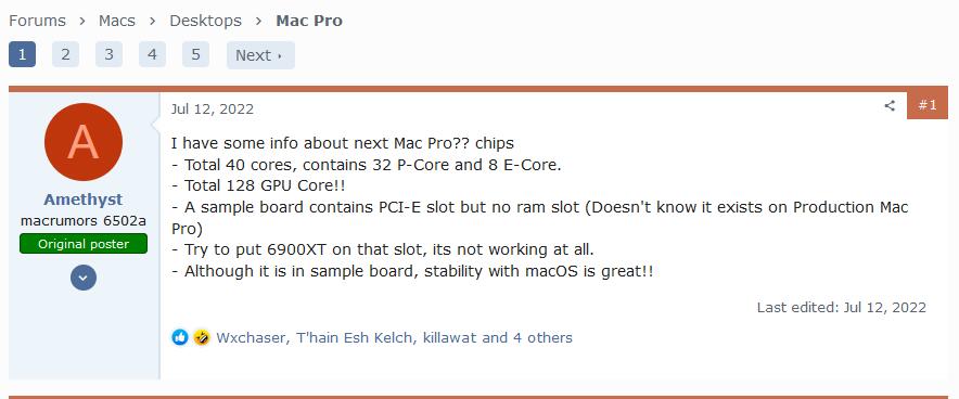 本月早些时候,Amethyst 还分享了预生产的 Mac Pro 逻辑主板信息,包括装备 40 核 CPU (32 颗性能核心额和 8 颗效率核心)和 128 核 GPU 的 Apple Silicon 芯片。而这款 Mac Pro 原型主板将包括至少 1 个 PCIe x16 插槽。