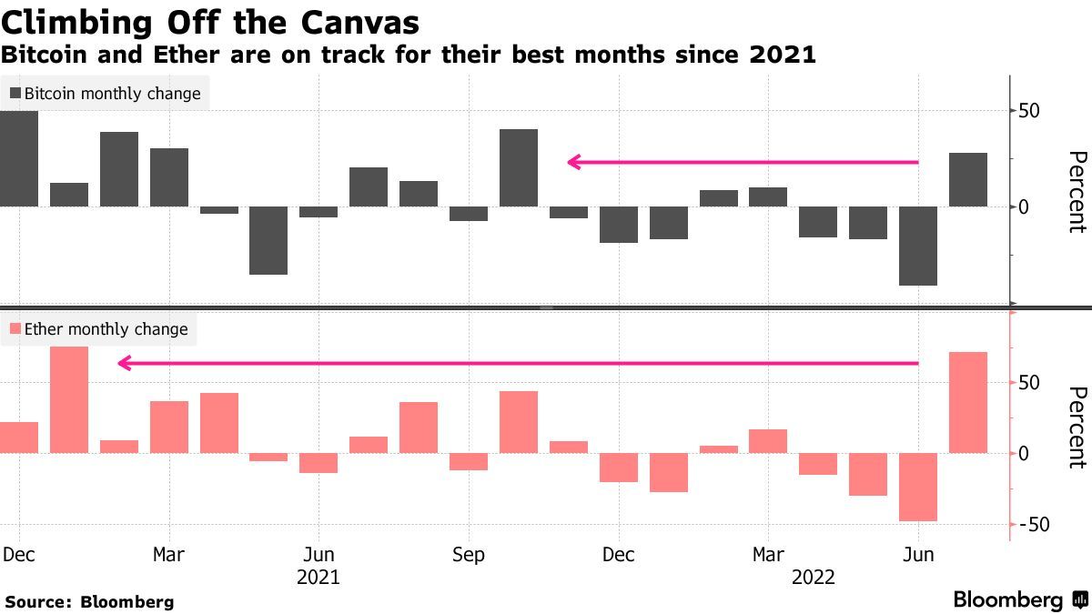 比特币和以太坊正走向2021年以来表现最佳月份