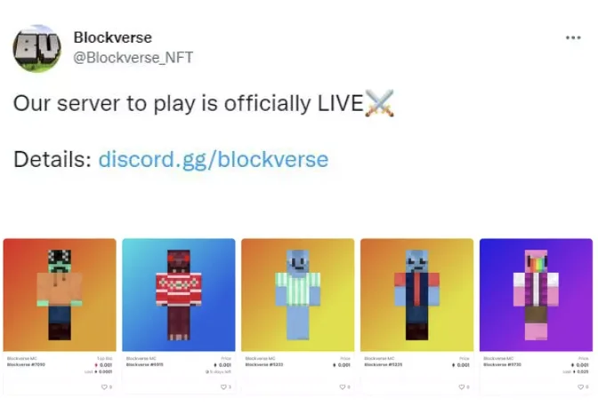 在今年年初,有一个叫 Blockverse 的团队在网络上放出话来。说是要打造一个 MC 的 NFT 服务器,玩家可以到这个服务器里边玩边“ 挖矿 ”赚钱。
