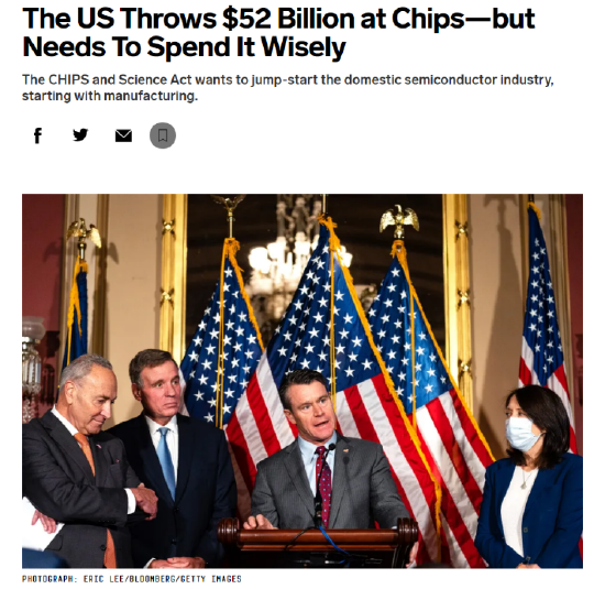 所以很显然,“CHIPS Plus”是中期选举前拜登能推动的、为数不多的政绩之一,也是极少数能在两党议员中取得多数共识的刺激法案之一。