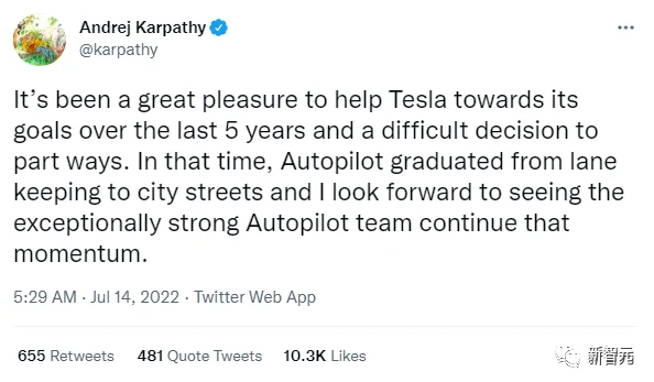 就在7月14日,特斯拉AI高级总监、自动驾驶视觉团队负责人Andrej Karpathy发布推文,宣布自己将离开特斯拉。