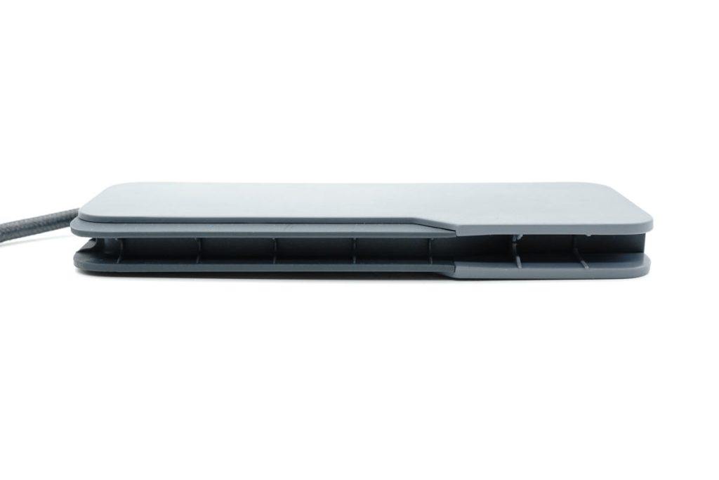 展开线材,可看到收纳槽内设有固定卡扣设计,防止脱落缠绕。