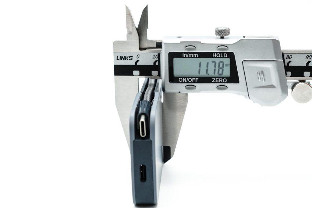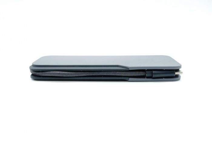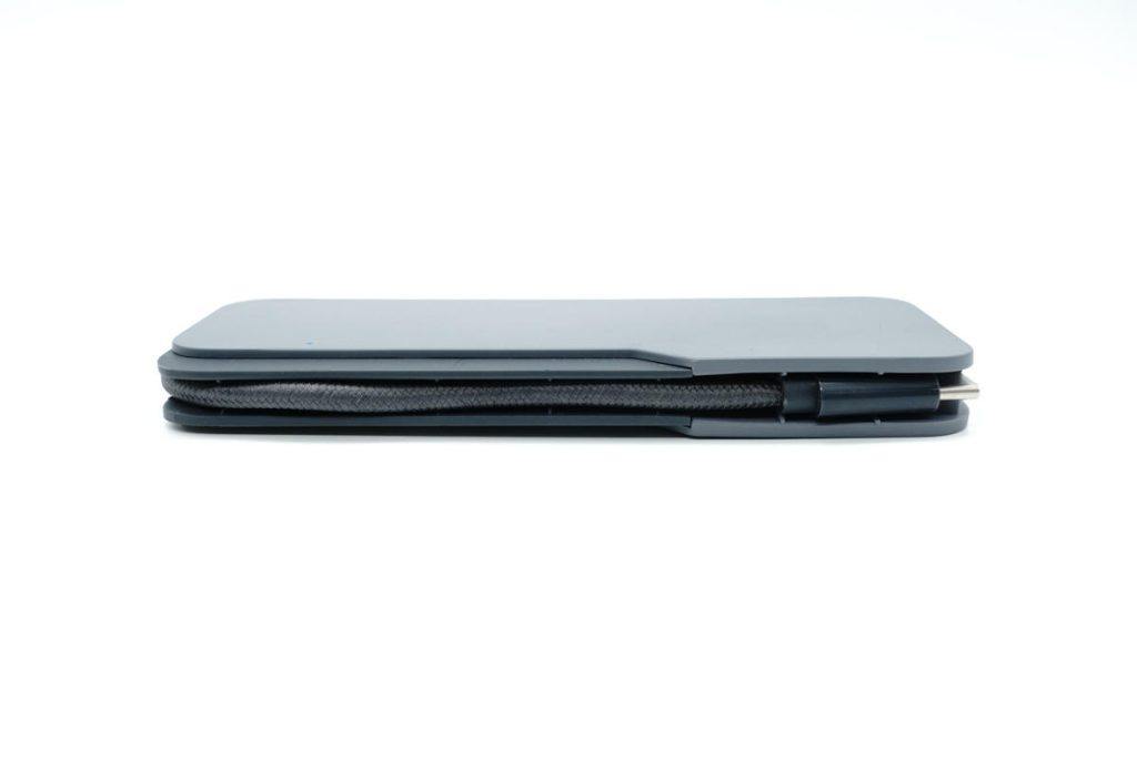 侧面收纳一条一体式USB-C线材,长度约为正面外壳盖板周长的一半左右。