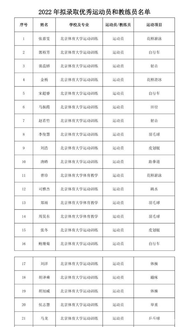 8月7日,北京体育大学官方公布2022年优秀运动员、教练员免初试攻读硕士研究生名单,多位奥运冠军上榜,国家乒乓球队长马龙就是其中之一,另外还有侯志慧、刘洋等。国乒队员一直都有去名校深造的,比如丁宁就读北京大学、樊振东保送上海交大。
