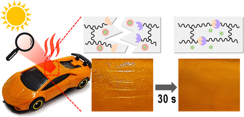 这种新涂层包含一个基于丙烯基多元醇的聚合物网络,具有受阻尿素结构。从本质上讲,这些聚合物具有动态的化学键,在受到刺激时会发生断裂,然后按原来的排列方式重新组合从而有效地修复像划痕这样的轻微损伤。在这种情况下,触发因素是热,这是由一个有机光热染料提供,该染料可以捕捉红外光,同时也嵌入在涂层中。
