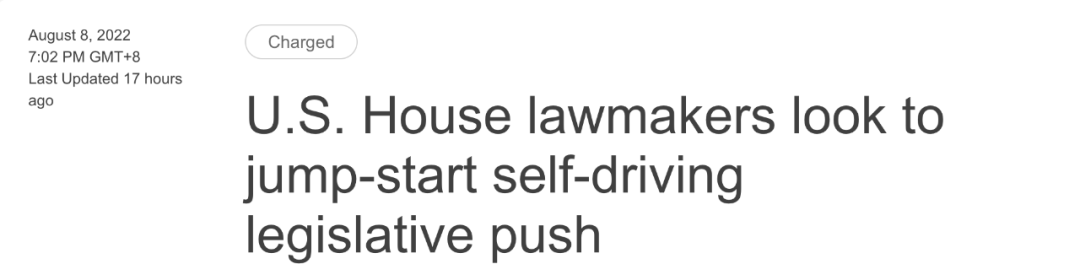 就在中国这份自动驾驶商用落地指南出台后,美国众议院两名议员旋即发起了一项两党联合行动,希望再度推动对自动驾驶完全无人驾驶的全国性立法。