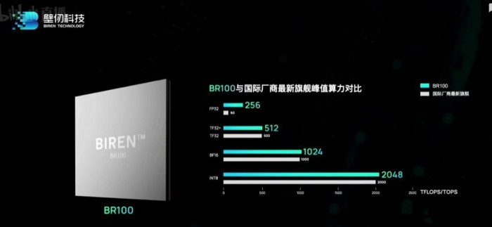 性能方面,1024 TOPS INT8、512 TFLOPS BF16、256 TFLOPS TF32+、128 TFLOPS FP32,可实现2.3TB/s外部I/O带宽,支持64路编码、512路解码等,号称在FP32(单精度浮点)、INT8(整数,常用于人工智能推理)等维度,均超越了国际厂商最新旗舰。