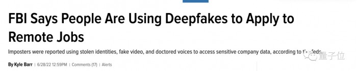 美国联邦调查局(FBI)曾致函其互联网犯罪投诉中心,称收到过多起投诉,有人利用窃取的信息和深度伪造的视频、语音申请远程技术工作。