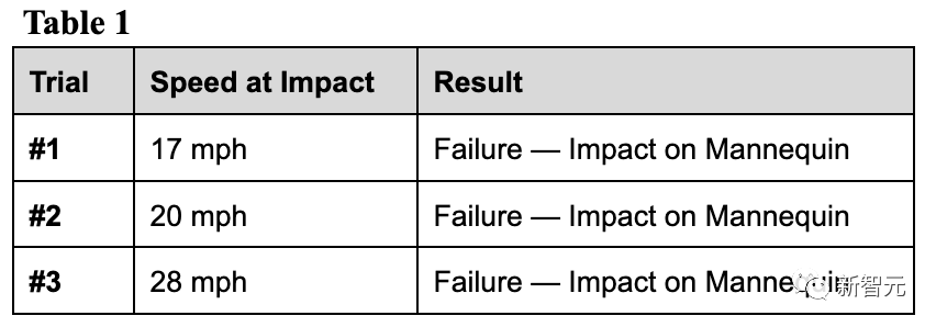 “原版”报告指出,特斯拉在三次测试中分别以24、27和25英里/小时(39、43和40公里)的速度发生碰撞。