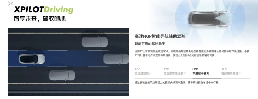 比如小鹏P7目前有三种智能驾驶系统的硬件配置,分别对应着三个级别的功能:丐版车型仅拥有定速巡航功能,而XPILOT 3.0则拥有高速NGP智能导航辅助驾驶,而2.5版本,则只有基础的LCC车道保持和ACC自适应巡航功能。三个版本,相差了三个时代。