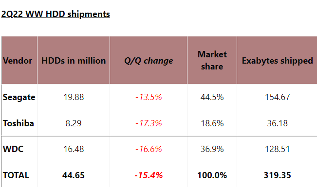 机械硬盘本就遭遇着被SSD取代的艰难时刻,没想到又遇到PC电脑空前的低迷危机,境况可想而知了。来自StorageNewsletter和Trendfocus联合发布的数据显示,今年第二季度,全球机械硬盘出货量为4465万块,环比下滑多达15.4%。