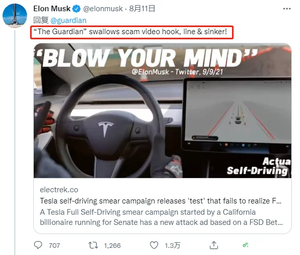 随着事越闹越大,社交达人马斯克坐不住了,他发推回复卫报,你们所有人都被这人骗了。
