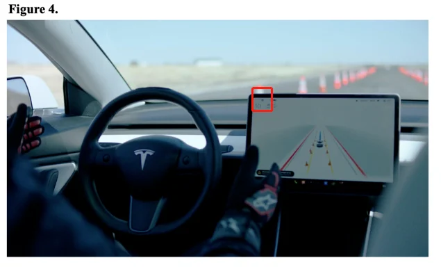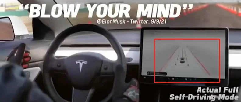有人发现,这次测试里,司机表面上是有按下自动驾驶开关的动作。但放大细看你会发现,特斯拉中控屏的自动驾驶功能模块是灰色的。