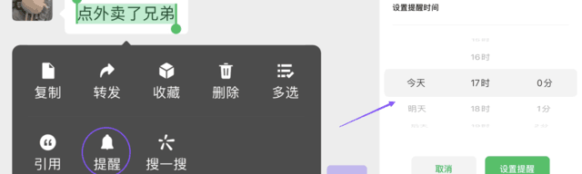 好友或者同事发来的信息需要到时间提醒?长按该条消息,选择“提醒”,设置提醒时间,计时结束后,消息会再次提醒。你也可以自己输入信息,设置个人提醒。