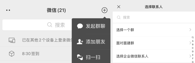 点击微信右上角“+”号,选择“发起群聊”、“面对面建群”,输入4个数字,就可以创建一个自己是群主的群聊。