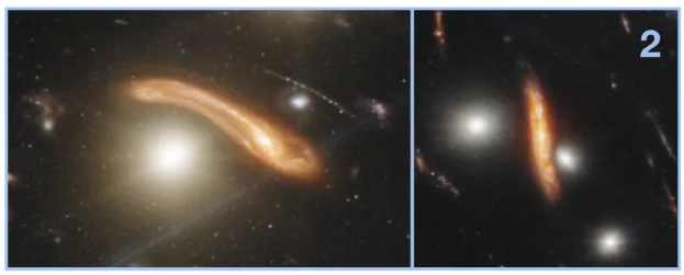 在图1中,你能看到一些浅浅的弧线。它们虽然“黯淡”,但和照片中最惊人的巨大引力光弧一样,都是星系团产生的引力透镜效应的杰作。