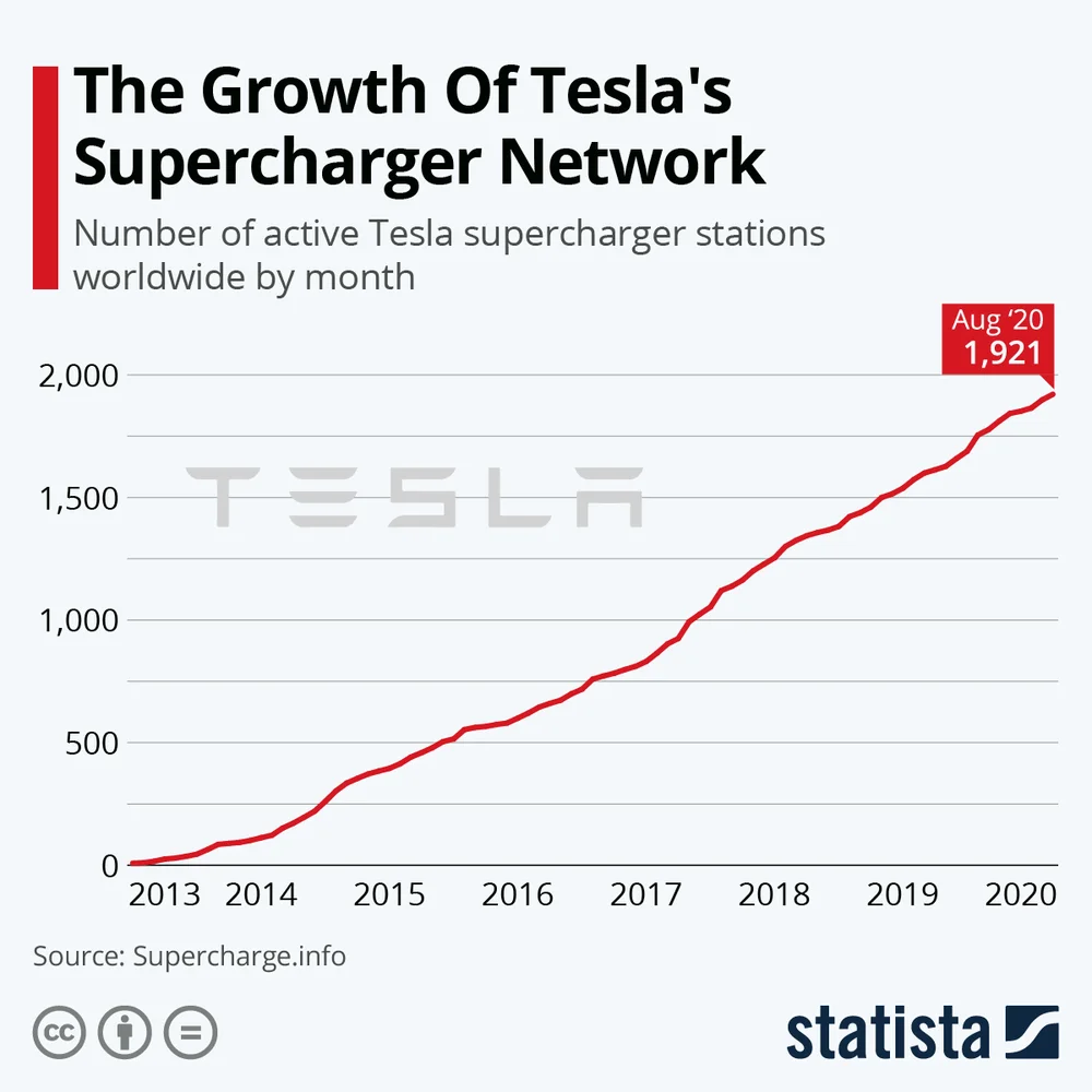 作为参考,特斯拉截止今年第二季度在全球范围内有3971座超充站,相比去年第二季度的2966座,新增了1005座超充站。