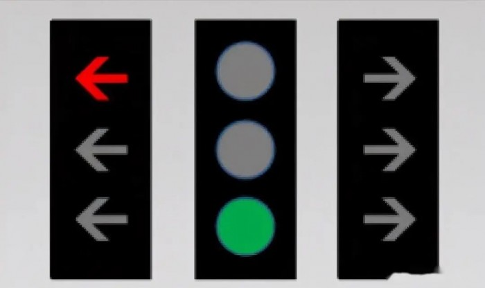 就算信号灯熄灭,你也很难看清楚灭着的灯具体是哪个方向的,直接按照圆饼信号灯的指示通行即可。