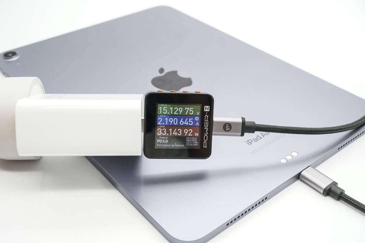 使用线材搭配PD充电器为iPad充电,功率在33W左右,此时的充电电流为2.19A。