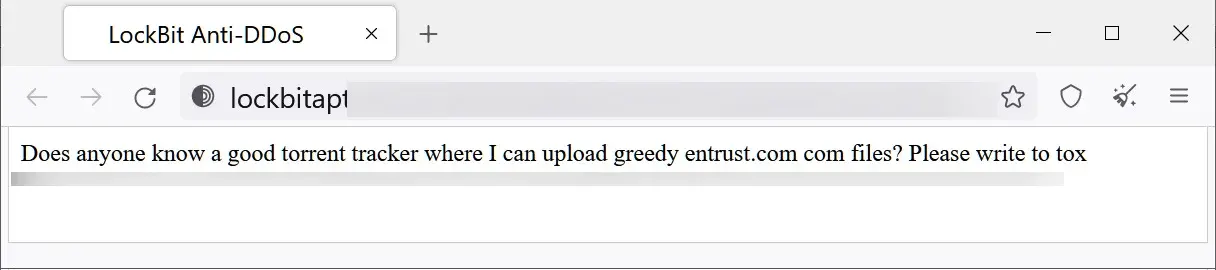 作为对攻击的报复,LockBit 的数据泄露站点现在显示一条消息,警告说勒索软件团伙计划将 Entrust 的所有数据作为种子上传,这将使其几乎不可能被删除。
