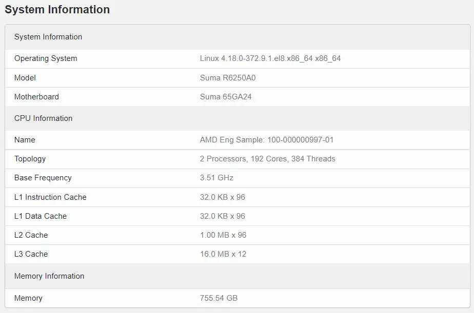 最终该 CPU 的单核成绩为 1460 分,多核成绩为 96535 分。在单线程方面,该 CPU 比同等时钟频率的 128 核 EPYC 7763 高出约 17%。 Geekbench 列表还包括一个 OPN 代码 100-000000997-01,根据现有泄漏,它很可能对应于旗舰 AMD EPYC 9664,最大 TDP 为 400 W。