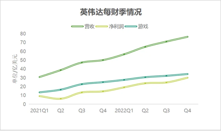 这让它可以避开大部分公司都受困于的行业周期:游戏行业不景气时,它可以靠AI产业的需求补上;AI虚火退却时,它可以用汽车业务续上;甚至是疫情来了,它也是居家场景的受益者。换句话说,它就是那种被所有人羡慕的“收税”的公司,你永远离不开它,那么它就永远可以增长。