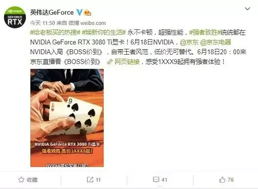 英伟达甚至自己还当了一波“官方黄牛”。去年年中,其官微@英伟达GeForce宣布在6月18号当天开售RTX 3080 Ti显卡,活动海报上给出的价格却是1XXX9元起,比涨价后的官方指导价又至少高了一千。