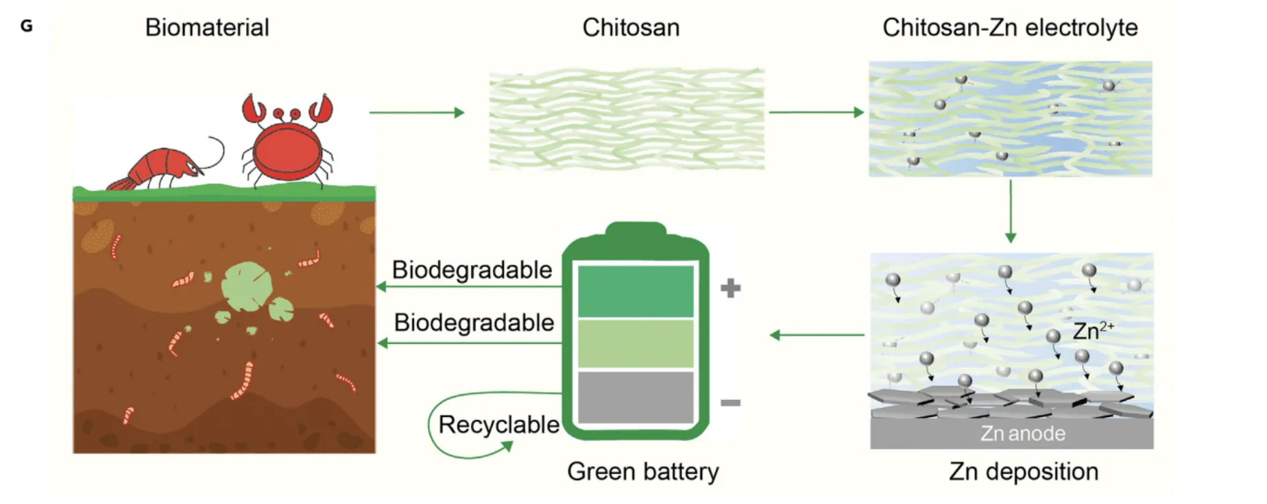 根据该团队的新研究,其电池原型中使用的壳聚糖在五个月内完全分解,并留下了一种叫做锌的金属成分--而不是像标准电池那样的铅或锂--这实际上是可以回收的。