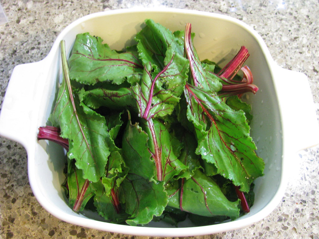 甜菜叶是甜菜的叶子,是生长在地下的彩色根茎类蔬菜。甜菜叶的质地和味道与菠菜相似,但味道更浓。你可以在沙拉中生吃这些绿叶蔬菜,也可以像菠菜、瑞士甜菜或其他绿叶蔬菜一样烹调。但像瑞士甜菜一样,它们的草酸盐含量很高,所以最好是煮熟,以减少其草酸盐含量。