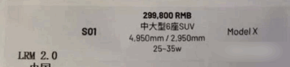 S01基于Shark(打造产品性能)平台打造,2023年下半年开启交付,全系均为四驱车型,车长4950mm,轴距250mm左右,主要竞争车型为特斯拉Model X。