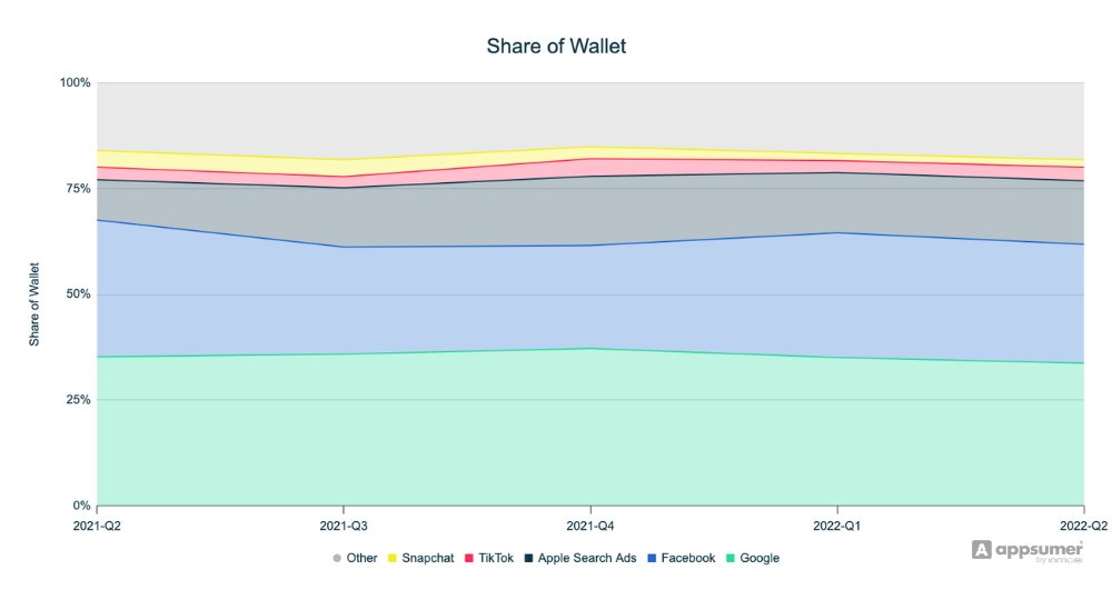 "这种趋势也体现在钱包份额上,ASA的份额同比增长了5个百分点,达到了15%,"Appsumer报告继续说道。"Meta同比下降了四个百分点,但仍以28%的份额大幅领先。"