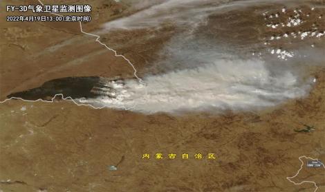 静止气象卫星风云四号 A 星每五分钟就能获得一次监测图像,可以实现对沙尘暴的实时监测。下面展示的便是 2021 年 3 月 15 日出现的近 10 年最强沙尘暴过程,从动画中可以看出,影响此次沙尘天气过程的系统是一锋面气旋云系,在地面冷锋南侧的内蒙古中西部、甘肃、宁夏、陕西北部、山西北部、河北大部、北京、天津等地都出现了沙尘暴(图中偏黄色区域)。