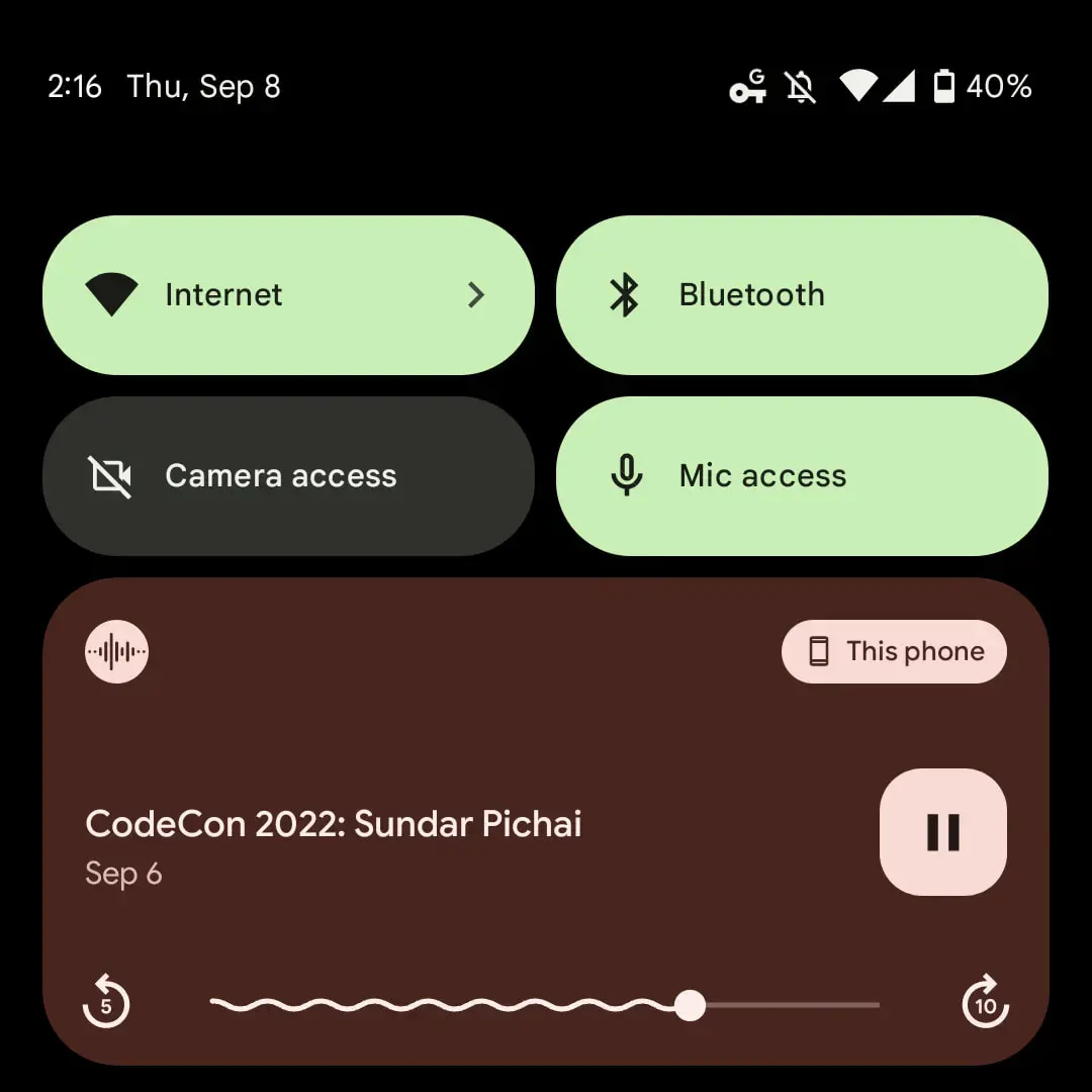 Android 13 的媒体播放器,获得了 UI 方面的改进。