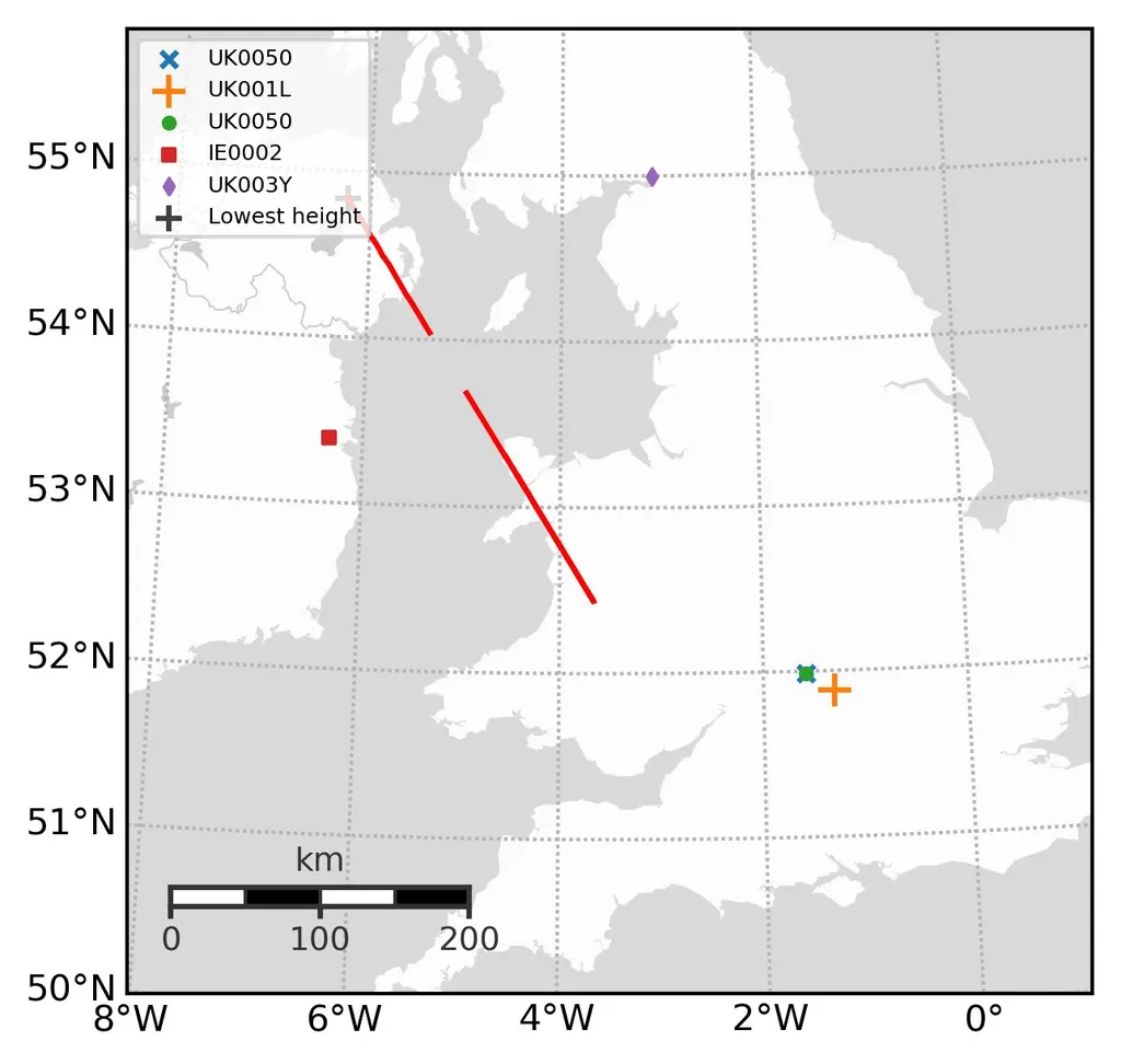 国际流星组织 (IMO) 于英国夏令时间周三晚上 9 点 58 分收到了将近 1200 份火球目击报告。这个明亮的绿白色火球燃烧了 20 多秒时间。最初,来自英国流星网络(UK Meteor Network)的 172 台天空摄像机的数据表明,它可能是一颗脱离轨道的 Starlink 卫星。