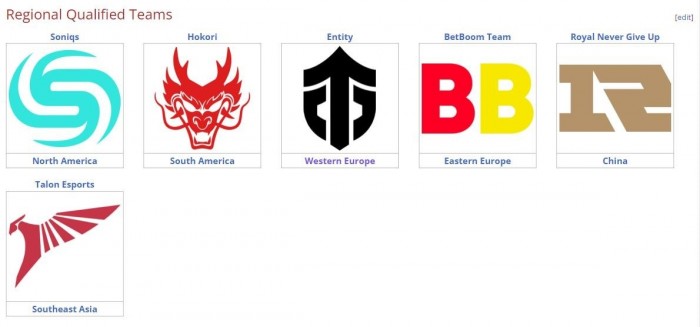 而除了RNG,六大赛区预选赛的剩余五支队伍分别为:Entity(西欧赛区),BB(东欧赛区),Talon(东南亚赛区),Soniqs(北美赛区)和Hokori战队(南美赛区)。