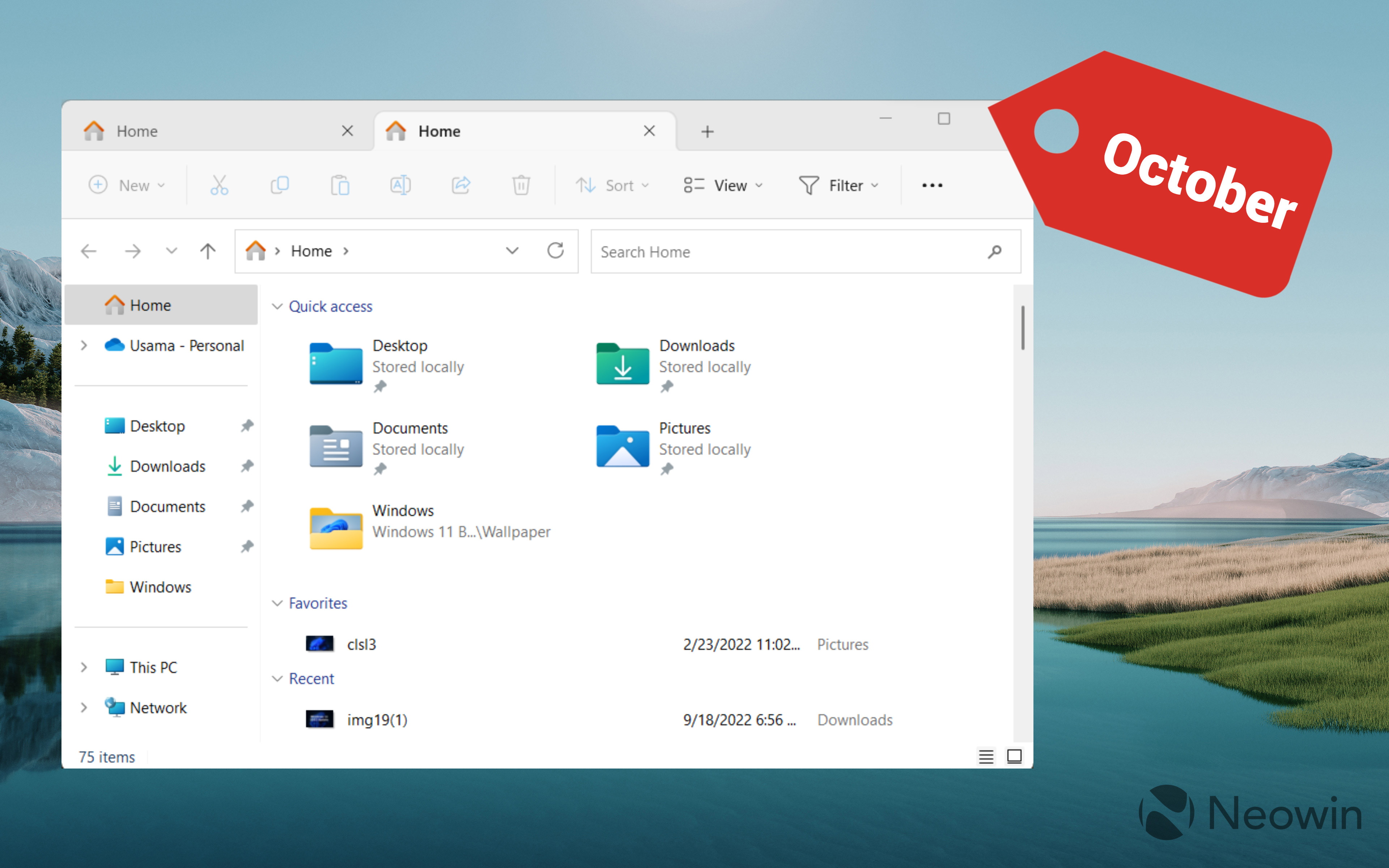 最重要的自然是标签式文件资源管理器,早在4月份微软就已经确认了Windows 11的这一UI增强,但现在,微软已经确认了一个相对更具体的时间框架。标签式文件资源管理器为你提供了一个类似于微软Edge等浏览器的标签式界面。虽然有很多改进的余地,但这毕竟只是微软对这一呼声很高的新功能的第一次尝试。与此同时,微软还介绍了一个经过改进的主页,它可以为你显示通过微软365同步的文件的个性化建议。